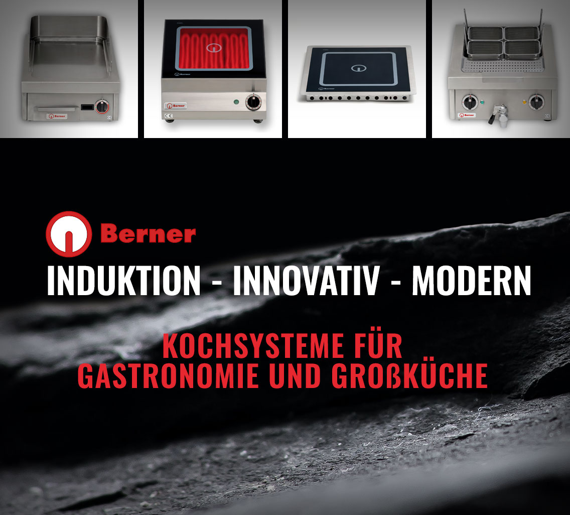 Technik von Profis für Profis in der Küche. Das Produktsortiment ist allumfassend. Bei der Entwicklung der BERNER der Kochsysteme, steht der Kunde und die Wahl von leistungsstarken Komponenten im Vordergrund. In der Entwicklung, wurden auch die Erfahrung aus der Praxis am Herd berücksichtigt.