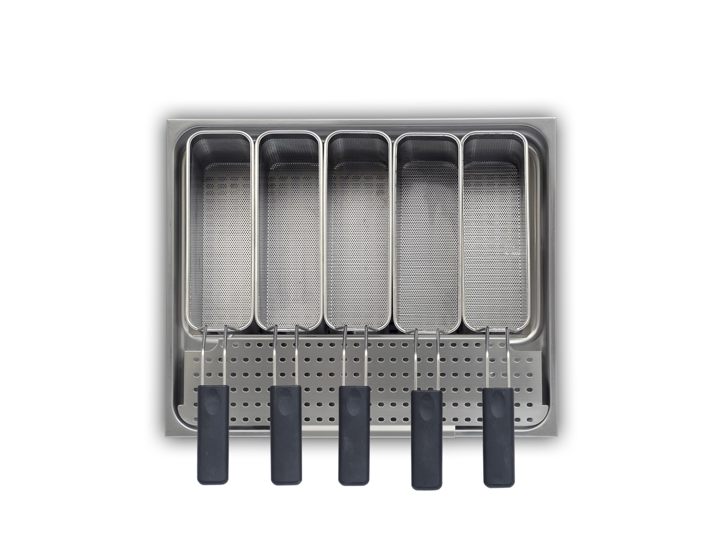 - A - 1 Nudelkorb GN 1/3 - 298 x 163 x 230 mm sowie 4 Nudelkörbe GN 1/6 - 143 x 163 x 230 mm