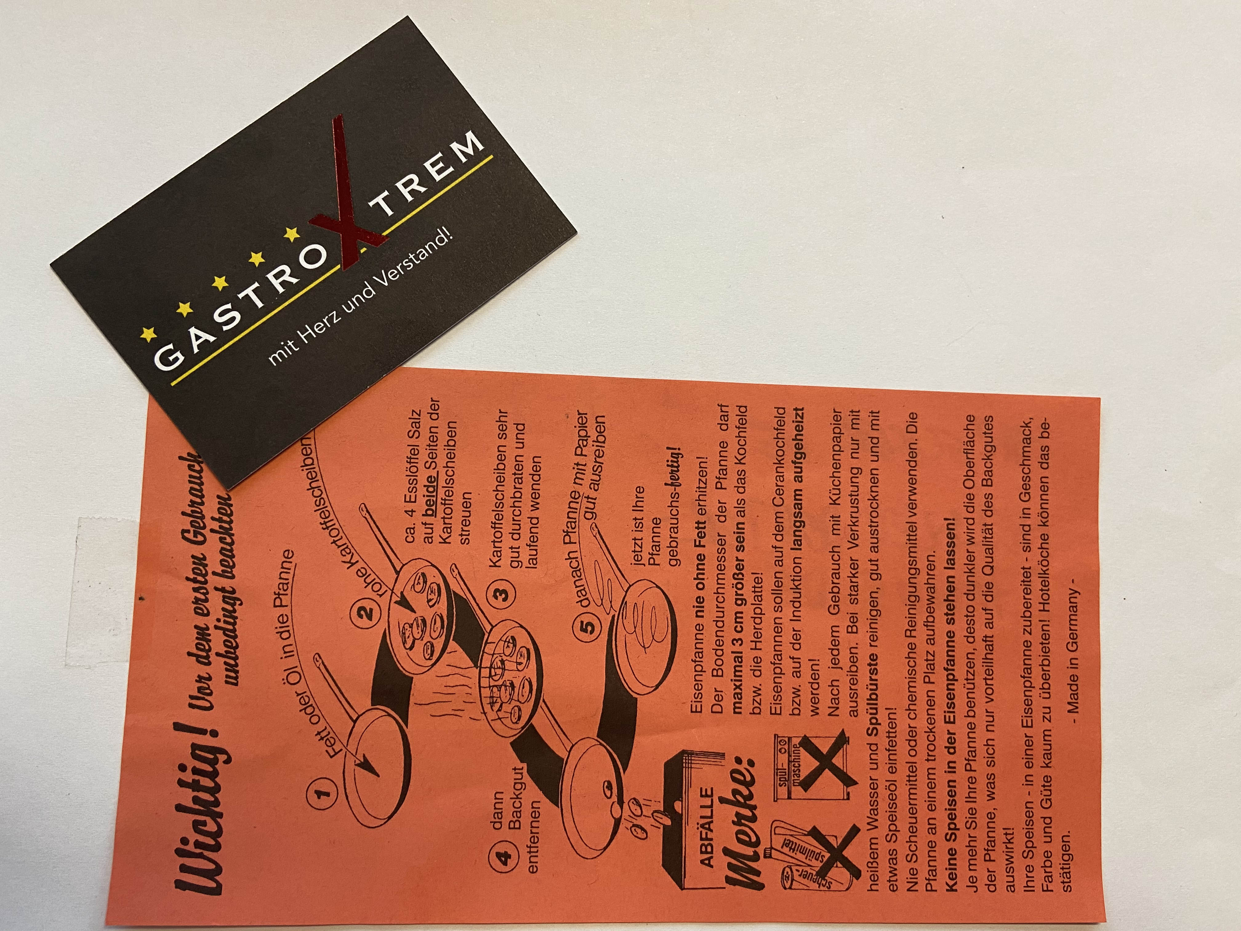 Und damit das Kochen und Werkeln mit dem Wok auch richtig funktioniert haben wir einen Pfannenbenutztungs-Tip mit beigefügt. Gutes Gelingen !